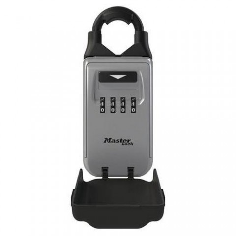 Střední bezpečnostní přenosná schránka s nastavitelným okem pro uložení klíčů a cenností. Skříňka má nastavitelné univerzální oko pro bezpečné použití na téměř jakémkoli druhu dveřního kování. Hliníková konstrukce odolná proti povětrnostním vlivům. Nastavitelná 4-ciferná kombinace zámku. Vinylový potah oka a tvarovaný nárazník zabraňují poškrábání vašich dveří. Typ zámku - kombinační. Vhodné pro: klíče, přístupové karty. Vnější rozměr: 175 x 72 x 42 mm. Vnitřní rozměr: 88 x 57 x 32 mm.Bezpečnostní schránka Master Lock 5420EURD s nastavitelným okem