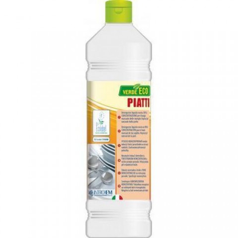 Jemný, trojnásobně koncentrovaný čistící přípravek na nádobí. Nepoškozuje pokožku a nemění PH.Detergent pro ruční mytí nádobí VERDE ECO PIATTI 1l