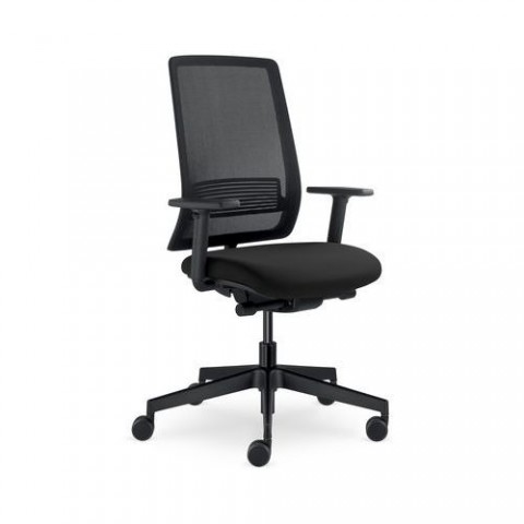 Kancelářská židle Lyra Air s prodyšným síťovaným opěrákem. Samonosná síťovina MEGA1 v černém provedení. Sedák s výplní ze studené pěny o tloušťce 50 mm je potažen látkou ERA v černé barvě. 5ramenný plastový kříž se širokou základnou pro maximální stabilitu a oporu je opatřen univerzálními kolečky o velikosti 60 mm. Mechanika SYB disponuje krokovým nastavením tuhosti odporu opěráku pomocí otočného voliče na pravé straně (z pozice sedícího).Kacelářská židle Lyra Air