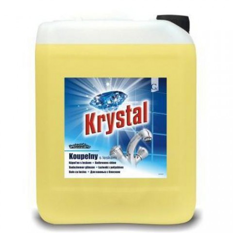 Krystal na koupelny má vysokou koncentraci aktivních látek, které jsou určeny ke snadnému odstraňování větších nánosů vodního kamene, rzi, silnějších vrstev mechanických nečistot a zajišťuje vysoký lesk. Antibakteriální přísada, vysoký lesk s voduodpudivým efektem, nově rozšířené vlastnosti o odmašťující síla, žlutý odstín vyhovující barevnému kódování v profi úklidu dle směrnic EU, použitelný na všechny materiály odolným kyselinám.Krystal koupelny 5l žlutý
