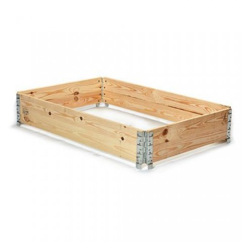 Dřevěný nástavec pro použití s Euro paletou je vyroben z jehličnatého hoblovaného dřeva tl. 20 mm. Lze nasazovat na sebe do potřebné výšky. Pomocí čtyř rohových kloubových spojů z pozinkovaných závěsů je umožněno při zpětné dopravě rámy skládat. Lze doplnit o víko z obalové překližky. Nástavné rámy nejsou určeny ke stohování.Paletové nástavce, dřevěné