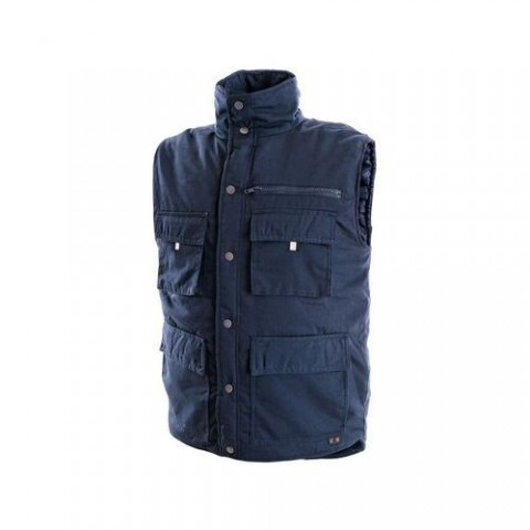 Zateplená pracovní vesta s pěti kombinovanými bočními kapsami a prodlouženým zadním dílem.Pánská zimní vesta CXS Denver, modrá