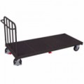 Plošinový vozík se svařovanou ocelovou konstrukcí. Voděodolná lepená plocha z protiskluzové překližky. Čelní stěna o výšce 800 mm s madlem. Nakládací výška 305 mm. Šedá kola z termoplastické pryže nezanechávající stopy na plastovém ráfku s přesnými kuličkovými ložisky nebo elastická celopryžová kola na litém hliníkovém ráfku s přesnými kuličkovými ložisky.Plošinové vozíky s protiskluzovým povrchem
