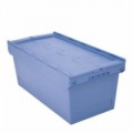 Plastové přepravní boxy s integrovaným víkem. Speciální vybrání ve víku umožňuje přepáskování při transportu přepravní službou. Možnost stohování na sebe nebo při otevřeném víku do sebe při zpětném transportu. Vyrobeny z polypropylenu. Plastové přepravní boxy ALC s víkem, modré