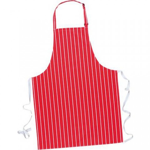 Klasická bavlněná zástěra praktické nastavitelné zapínání u krku všestranné využití. Nastavitelné popruhy Šňůrka proti zamotání 100% bavlnaŘeznická zástěra, červená/bílá
