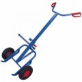 Vozík se svařovanou ocelovou konstrukcí pro přepravu 200l sudů. 2 plastové rukojeti s ochranou. Středová podpěra sudu pro vyšší stabilitu. Pneumatiky na ocelovém ráfku nebo celopryžová kola na speciálním plastovém ráfku s přesnými kuličkovými ložisky a plastovým krytem kola.Rudly RU202 na sudy, do 250 kg