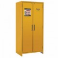 Kovové svařované skříně s dvoustěnnou konstrukcí a trojbodovým jistěním dveří určené pro bezpečné a předpisové skladování hořlavých látek a chemikálií. Skříň je vybavená vyjímatelnou spodní nepropustně svařenou záchytnou vanou do které směřují případné úkapy z polic. Police jsou ocelové, pozinkované a jsou přestavitelné v rastru 76 mm. Ventilační otvory s bezpečnostní protipožární pojistkou v horní a dolní části skříně (uzavření v případě požáru). Dostupné ve variantě s automatickým nebo manuálním uzavíráním dveří. Varianta skříně s automatickým uzavíráním dveří automaticky uzavře dveře roztavením bezpečnostní pojistky v případě požáru nebo okolní teploty nad 74 °C a dveře zajistí. Vysoce reflexní štítky Haz-Alert™ varují před obsahem v jazycích EN, FR, ES a poskytují lepší viditelnost při osvětlení baterkou během požáru. Povrchová úprava práškovým lakem, nivelační patky pro vyrovnání drobných nerovností podlahy, uzamykání cylindrickým zámkem na klíč, možnost uzamčení i visacím zámkem,Skříně na hořlaviny Justrite Sure-Grip® EX, 889 x 889 x 559 mm