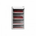 Kovové skříně k připevnění na stěnu. Uzavírání pomocí hliníkové rolety s pružinovým navíjením a rozvorovým zámkem. Perforovaná zadní stěna. K dostání ve třech barevných variantách (modrá, šedá, tmavě modrá). Nosnost 35 kg.Skříně s roletou na zeď, 780 x 930 x 220 mm