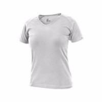 Dámské tričko s průkrčníkem do V. Krátký rukáv raglánového typu. Střih zvýrazňující dámskou postavu a elastan pro pružnost a dlouhodobé udržení tvaru. Velikost: XS-XXL Materiálové složení: 95 % bavlna, 5 % elastan, single jersey Gramáž: 180 g/m2 Barva: bíláTričko ELLA, dámské, bílé