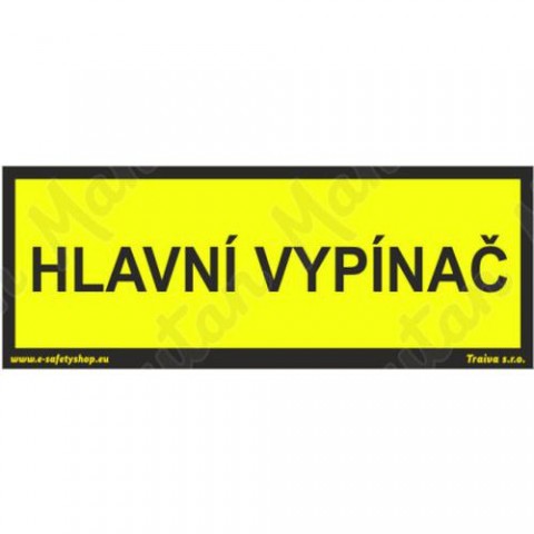 Bezpečnostní značení tabulkou, značkou nebo samolepkou "Hlavní vypínač" tiskneme na vysoce kvalitním materiálu, barvami s vysokou odolností proti otěru a UV záření. Tím zajišťujeme splnění požadavků Nařízení vlády č. 375/2017 Sb., ČSN ISO 3864-1, ČSN ISO 3864-2, ČSN ISO 3864-3, ČSN ISO 3864-4.Výstražné tabulky - Hlavní vypínač