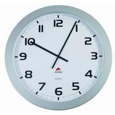 Velké nástěnné hodiny s klasickým ciferníkem. Autonomní hodinový strojek Quartz napájený tužkovou baterií 1,5 V (IEC LR 6). Plastový rám v metalické šedé barvě se skleněným krytem ciferníku. Výška číslic 4 cm.Analogové hodiny Q3, autonomní quartz, průměr 60 cm