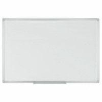 Popisovatelné bílé tabule s magnetickým povrchem. Deska tabule z lakované oceli. Hliníkový rám s plastovými rohy. Suché čištění pomocí magnetické houby nebo hadříku. Plastová odkládací lišta se upevňuje do rámu.Bílé magnetické tabule Manutan Expert