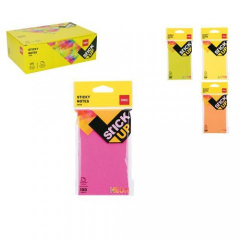 Bloček samolepící DELI STICK UP 76 x 126mm 100l NEON, mix, 12ks