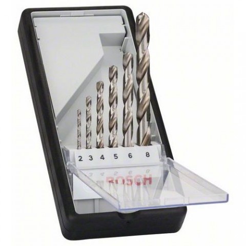 Vhodné pro legovanou a nelegovanou ocel do pevnosti v tahu 900 N/mm2, ocelolitinu, šedou litinu, spékané železo, tvárnou litinu, neželezné kovy, tvrdé plasty. Přesně broušený vrták HSS-G do oceli umožňuje až o 40 % rychlejší postup při vrtání, případně až o 50 % nižší přítlačnou sílu oproti standardně broušeným vrtákům HSS s kuželově broušeným pláštěm. Díky samostředicímu vrtacímu hrotu s křížovým výbrusem je důlkování nebo předvrtání do průměru 10 mm zbytečné balení: 1 x BAL, 6ks v BAL pracovní délka: 24; 33; 43; 52; 57; 75 mm o vrtáku: 2; 3; 4; 5; 6; 8 mmBosch - Sada vrtáků do kovu Robust Line HSS-G, 6dílná, 135° 2; 3; 4; 5; 6; 8 mm, 135°