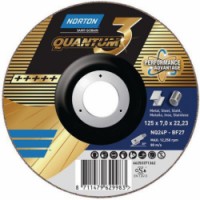 Brusný kotouč Norton pro vynikající výsledky při broušení kovů a nerezové oceli. Dvojitá keramická vrstva na brusném kotouči s jemnějším zrnem na vnější vrstvě, která snižuje odlamování a umožňuje kontrolovanější odjehlování. Vysoká rychlost odstraňování a nízká spotřeba kotouče.Brusné kotouče Norton na kov Quantum 3, průměr 125 a 230 mm