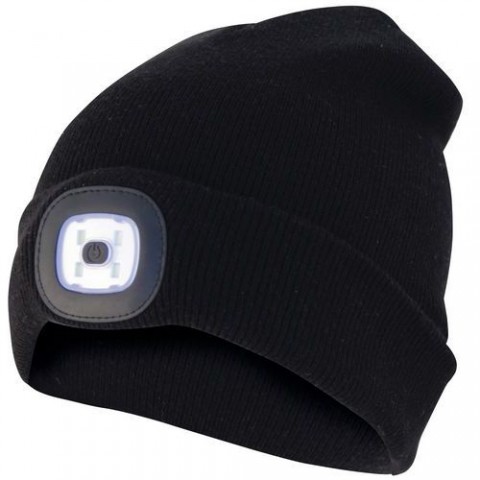 Hřejivá a pohodlná akrylová čepice s odnímatelným LED světlem na přední straně. Nabíjení světlometu přes USB díky integrovanému portu USB.Čepice s integrovaným LED světlem