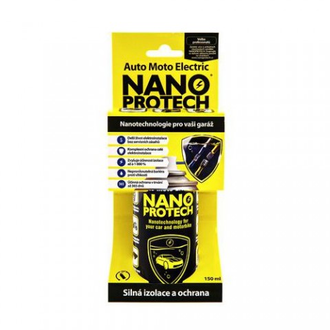 NANOPROTECH Auto Moto Electric chrání elektroniku a elektrické součástky v autě či v motocyklu před působením kyselého deště, vlhkosti a solných roztoků až po dobu 1 roku. Aplikací roztoku seprodlouží životnostvozu a ušetříse časté a nákladné návštěvy servisu. Složení - směs minerálních olejů, propan-butan, dezodorizovaný parafín, směs cyklických uhlovodíků, antikorozní přísady, antioxidanty, přísada Nanoprotech Technické vlastnosti - elektroizolační a čisticí roztok, vysoká ochrana proti solným a kyselým roztokům, odolnost vůči teplotám od -80 °C do +160 °C, jedna aplikace až na 1 rokČisticí a elektroizolační roztok NANOPROTECH Auto Moto Electric