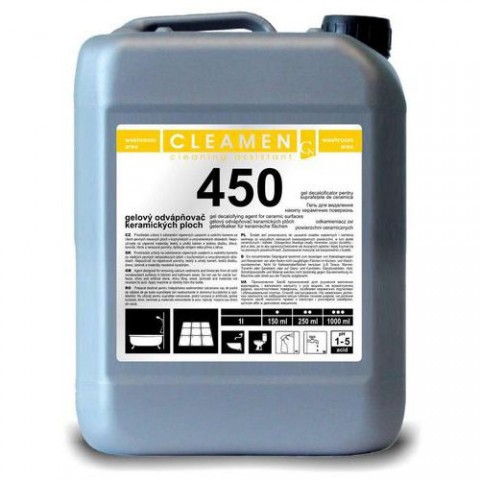Prostředek je určený k odstranění vápenných usazenin a vodního kamene ze všech pevných, nesavých, kyselinám odolných. Vhodný na bazény, balnea, lázně i do průmyslových provozů. Nevhodný na vápencové povrchy, lesklý a umělý kámen, hliník a dřevo, lamináty, nerez.Cleamen 450 odvápňovač ploch 5l