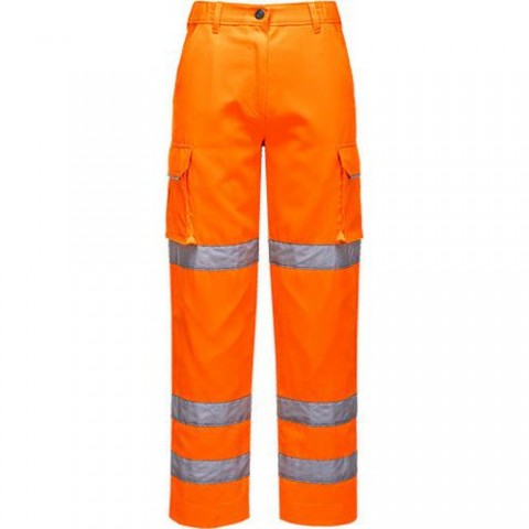 Hi-Vis pracovní dámské kalhoty s reflexními prvky pro vysokou viditelnost. Celkem 7 kapes pro ukládání věcí, elastický pás v bocích. Tkanina odráží 98 % UV záření (UPF 50+). Vyrobené z 65% polyesteru a 35% bavlny 245 g. Splňují normy EN ISO 20471 Třída 2; RIS-3279-TOM ISSUE 1.Dámské reflexní kalhoty Hi-Vis, oranžové
