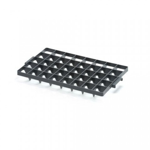 Mřížkové vklady do přepravek slouží pro skladování, transport nebo mytí sklenic. Mřížky jsou navržené tak, aby provedení volně přiléhalo ke dnu, zatímco provedení nahoře je přitlačeno pomocí čelně postavených příček do otvoru.Dělicí příčky na sklenice do přepravek