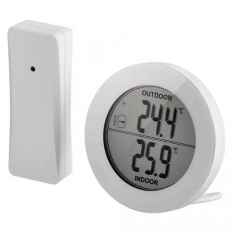 Digitální teploměr měří venkovní i vnitřní teplotu s rozlišením 0,1 °C. Bezdrátové čidlo s dosahem až 80 m. Průměr displeje 64 mm. Funkce indikace trendu vývoje teploty, zobrazení minimální a maximální teploty. Indikace teploty v interiéru od -10 do 50 °C, v exteriéru od -30 do 50 °C. Lze přepínat jednotky mezi stupni Celsia a Fahrenheita. Napájení čidla i stanice dvěma 1,5 V AAA bateriemi. Možnost připevnění na stěnu, nebo lze umístit na stůl či komodu pomocí stojánku.Digitální bezdrátový teploměr Emos E0129