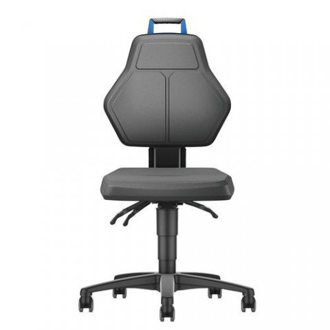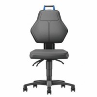 Pracovní židle do dílny a průmyslová pracoviště. Sedací plocha z polyuretanu. Výškově nastavitelné opěradlo pro optimální bederní podporu. Nastavení výšky a sklonu sedadla. Stabilitu zajišťuje plastový kříž s kolečky.Dílenská židle Manutan Expert Pegas