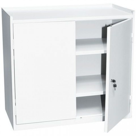 Skříně jsou konstruovány ze svařovaného plechu tloušťky 0,9 mm. Vnitřní vybavení tvoří dvě police. Dílenské skříně je možno uzamknout pomocí cylindrického rozvorového zámku. Materiál skříně je ocel.Dílenské skříně na nářadí Manutan Expert, 91,5 x 100 x 50 cm