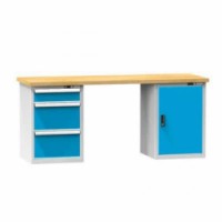 Pracovní stoly KOMBI jsou nejžádanější sestavy stolů kombinovaných ze stavebnicových nábytkových dílů. Pracovní stoly nabízíme v předdefinovaních sestavách pro každý typ v několika šířkách i hloubkách. KOMBI stoly se sestavují z pracovní desky, nohy pracovního stolu (nabízíme několik variant) nebo zásuvkové skříně, které mohou být na obou stranách stolu. Nohy je možné opatřit kolečky nebo elektro vybavením. Pracovní prostor mnohonásobně rozšíříte díky nástavbě pracovního stolu a širokému příslušenství.Dílenské stoly KOMBI LM4725, 2500 x 700 x 880 mm, MULTIPLEX