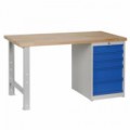 Pracovní stoly KOMBI jsou nejžádanější sestavy stolů kombinovaných ze stavebnicových nábytkových dílů. Pracovní stoly nabízíme v předdefinovaních sestavách pro každý typ v několika šířkách i hloubkách. KOMBI stoly se sestavují z pracovní desky, nohy pracovního stolu (nabízíme několik variant) nebo zásuvkové skříně, které mohou být na obou stranách stolu. Nohy je možné opatřit kolečky nebo elektro vybavením. Pracovní prostor mnohonásobně rozšíříte díky nástavbě pracovního stolu a širokému příslušenství.Dílenské stoly KOMBI DB4815, 1500 x 800 x 880 mm, BUK