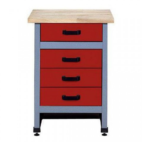 Pracovní stůl Monti je vybaven deskou z bukové spárovky, čtyřmi zásuvkami i šrouby pro vyrovnání stolu na mírně nerovné podlaze. Kuličkový mechanismus zaručuje 70% vysunutí zásuvek. rozměry v x š x h: 84 x 60 x 60 cm materiál: ocelový plech, tl. 1 mm; ocelový profil tl. 1 mm nosnost: 160 kg rozměry pracovní desky v x š x h: 3 x 60 x 60 cm materiál pracovní desky: buková spárovka výška zásuvky: 12 cm nosnost zásuvky: 25 kg počet zásuvek: 4 ks výsuv zásuvky: 70 % barva pracovní desky: buk barva podnoží: stříbrná barva zásuvek: červená RAL 3002 počet polic: 1 ks hmotnost: 36 kg vyrovnávací šrouby, dodáváno v demontovaném stavu (spojovací materiál součástí balení)Dílenský stůl Monti, 84 x 60 x 60 cm, 4 zásuvky