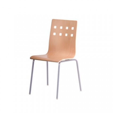 Jídelní židle v praktickém designu se skořepinovým sedákem vyrobeným z dřevěné lakované překližky. Podnoží v povrchové úpravě práškovým lakem v šedé barvě RAL 9006 osazené plastovými patkami pro ochranu podlahy. Využití rovněž jako kuchyňské, jednací nebo konferenční židle.Dřevěné jídelní židle Nela Alu