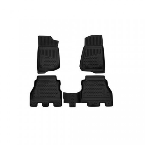 Koberce jsou vyrobeny přesně podle tvaru podlahových ploch konkrétního typu vozidla. Odpadá tak složité porovnávání mnohdy nepřesných univerzálních koberců a nutnost problematického zastřihávání do požadovaného tvaru. Koberce jsou snadno omyvatelné, s rychlou možností vysypání nečistot a snadnou instalací. Vysoce odolná pryž zajišťuje kobercům vysokou pružnost, která zabezpečí při ohýbání (např. při skladování), že se koberce roztáhnou opět do původního tvaru. Výhodou těchto koberců je zvýšený okraj, chránící interiér interiéru vozidla před vysypáním sypkých materiálů (písek, hlína) či vylitím tekutin (voda), nečistot, prachu, sněhu apod. do interiéru vozidla, s odolností vůči prosáknutí olejů, benzínu a částečně také vůči elektrolytu z akumulátorů. Nepříjemnému posunu koberců po podlaze vozidla či shrnování pod pedály účinně zamezí speciální protiskluzové tvarování na spodní straně koberců, které se snadno přichytí k originálnímu čalounění podlahových prostorů. Koberce jsou snadno omyGumové koberce JEEP Wrangler, 2018- , (USA) SIXTOL