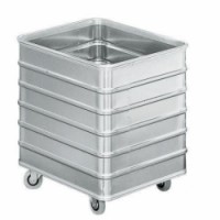 Hliníkový přepravní vozík s objemem 223 l a se stabilními zesílenými žebrovanými stěnami. Vozík je odolný vůči korozi, je lehký a snadno udržovatelný. Pohyb zajišťují dvě otočná a dvě pevná kola.Hliníkový přepravní vozík, 223 l