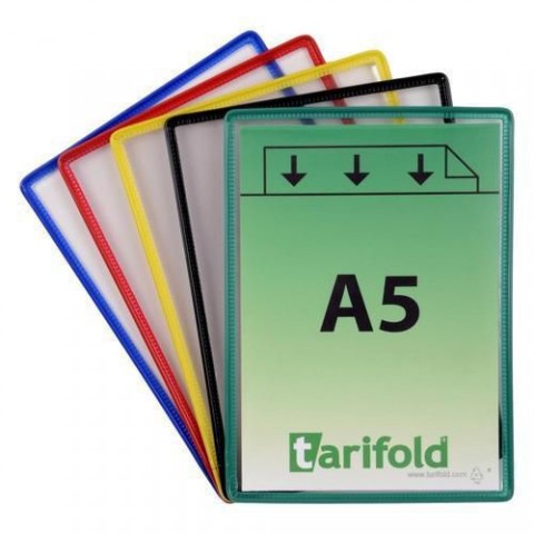 Průhledné tabulky A5 ke stojanům Tarifold Roto Revo slouží pro přehledné vyvěšení důležitých informací. Rámeček je vyztužen ocelovým drátem. Dostupné v několika barevných variantách.Informační rámečky Tarifold Rotor Revo A5, 5 ks