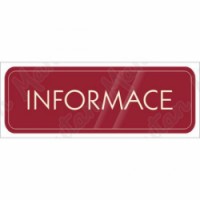 Tabulky, značky a samolepky "Informace" jsou tištěny na vysoce kvalitním materiálu, barvami s vysokou odolností proti otěru a UV záření. Provedení je plně v souladu s požadavky právních a technických předpisů, zejména Nařízení vlády č. 375/2017 Sb., ČSN ISO 3864-1, ČSN ISO 3864-2, ČSN ISO 3864-3, ČSN ISO 3864-4.Informační tabulky - Informace