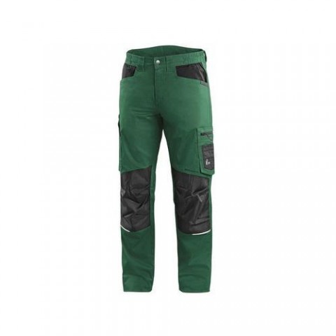 Pánské pracovní kalhoty z materiálu Move & Flex, který je vysoce odolný, flexibilní a umožňuje volný pohyb bez omezení. Pružný pas je doplněn poutky na opasek. Sed kalhot je zesílen pro vyšší odolnost a delší výdrž oděvu. Ergonomická kolena jsou vyztužena materiálem 600D polyester. Kalhoty jsou vybaveny předními kapsami, zadní kapsou a bočními multifunkčními kapsami s vyztužením 600D polyester. Reflexní doplňky zvyšují bezpečnost v prostředí se zhoršenou viditelností. Kalhoty jsou vybaveny EASY-PROLONG systémem, který umožňuje snadné prodloužení střihu na vyšší postavu uvolněním švu na nohavicích. Doporučené použití: strojírenství, stavebnictví, lehký průmysl, automobilový průmysl, logistika, skladová manipulace, spedice, autoservisy, údržba, montáže, zemědělství, zahrada, hobby. Velikost: 46-64 Reflexní doplňky: Ano EASY-PROLONG systém: AnoKalhoty CXS SOLIS FLEX, pánské, zeleno-černé
