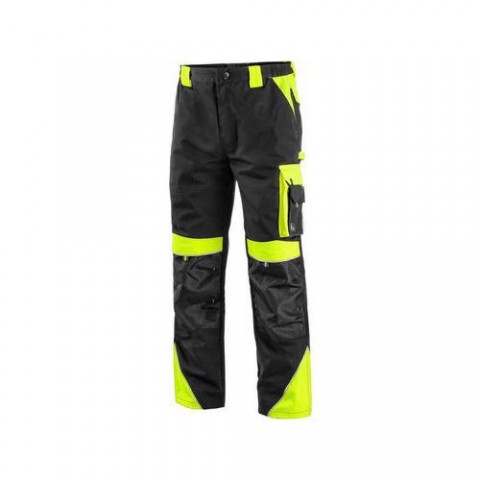 Pánské montérkové kalhoty zateplené flanelem, pas s poutky na opasek a gumou v bocích, přední klínové kapsy, multifunkční kapsy na obou stranách, kolena zesílena materiálem 600D polyesterem s možností vložení kolenních výztuh, dvě zadní kapsy s klopami, reflexní doplňky. Doporučené použití: stavebnictví, strojírenství, lehký průmysl, práce na silnici, odtahové služby, automobilový průmysl, logistika, skladová manipulace, spedice, autoservisy, údržba, montáže, zemědělství, zahrada, hobby. Velikost: 46-62 Sezóna: zimníKalhoty do pasu CXS SIRIUS BRIGHTON, zimní, pánské, černo-žluté