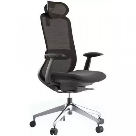 Kancelářská židle BESSEL v černém provedení s čalouněným sedákem a síťovaným opěrákem. Díky svému elegantnímu a mírnému designu je vhodná nejen do kanceláří, ale splňuje také požadavky do domácích interiérů na home-office. Vhodná pro výšku postavy 155 - 180 cm. Nosnost židle je 120 kilogramů. Ideální židle pro dlouhodobé sezení (8 a více hodin). Dobrou ergonomii sezení zde zastanou prvky jako synchronní mechanismus s možností blokace ve 4 pozicích a hloubkový posuv sedáku o 5,5 cm. Součástí židle je výškově nastavitelný podhlavník a výškově nastavitelná bederní opěrka. Synchronní mechanika je nejlepší volbou pro tělo a pro dlouhodobé sezení. Konstrukce kancelářské židle BESSEL stojí na stabilním hliníkovém kříži, jehož součástí je pětice nylonových koleček o průměru 60 mm (kolečka jsou vhodná na kobercové podlahy).Kancelářská židle BESSEL, černá
