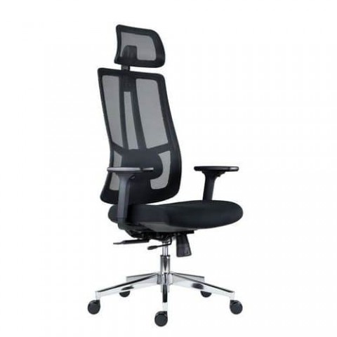 Kancelářská židle Ruben se sítí na opěradle a podhlavníku. Největší výhodou síťoviny je její případná eliminace pocení uživatelů zejména v letních měsících, nebo v přetápěných kancelářích. Čalouněný sedák s výplní ze studené pěny je hloubkově stavitelný v rozsahu 50 mm. Výškově stavitelná opěrka zad. Nastavitelnost zádové opěrky systémem UP-DOWN - plynulým zvedáním zádové opěrky dochází ke zvolení požadované výšky a jejímu okamžitému aretování ve zvolené poloze.Kancelářská židle Ruben, černá