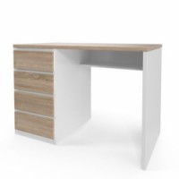 Malé stoly vhodné díky svým rozměrům pro práci na home office nebo do malé kanceláře. Čtyři plně výsuvné zásuvky v levé části stolu. Pracovní deska a nohy stolu jsou vyrobené z dřevotřísky tl. 25 mm, ostatní části jsou vyrobené z dřevotřísky tl. 18 mm. Pracovní deska je opatřená 2mm ABS hranou. Plastové kluzáky na nohách stolu. Dodáváno v provedení buk/šedá, dub sonoma/bíla nebo dub oyster/bílá.Kancelářské stoly Viva s levými zásuvkami, 110 x 76 x 60 cm