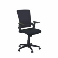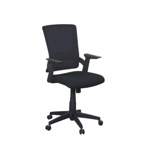 Kancelářské židle jsou opatřeny anatomicky tvarovaným textilním sedákem a síťovaným opěrákem. Houpací mechanismus umožňuje pohodlné sezen?? při práci. Možnost nastavení síly protiváhy a výšky sedáku. Židle je opatřena univerzálními kolečky pro tvrdou podlahu i koberec. Židle má černou barvu konstrukce, plastový kříž, plastové pevné područky a plynový píst.Kancelářské židle Eva
