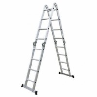 Kloubový hliníkový žebřík ze čtyř dílů po čtyřech příčkách, vhodný pro profesionální použití. Možnost sestavení jako opěrný žebřík, stojací štafle nebo lešení. Pracovní výška lešení je 3,16 m; štaflí 3,62 m a opěrného žebříku 5,4 m. Celková výška lešení je 1,26 m; štaflí 2,32 m a opěrného žebříku 4,6 m. Nosnost lešení je 105 kg, v pozici štaflí nebo opěrného žebříku 150 kg. Žebřík je opatřen ochrannými patkami.Kloubový hliníkový žebřík, 4 x 4 příčky