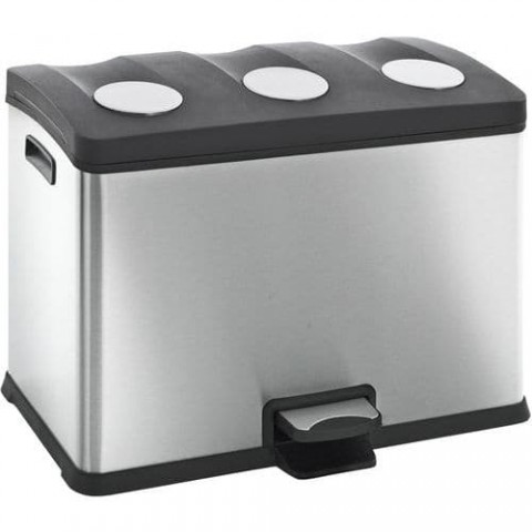 Obdélníkový nášlapný koš z matné nerezové oceli se 3 plastovými koši (3 x 12 l). Vybaven víkem s měkkým zavíráním a úpravou proti otiskům prstů.Koš na odpadky Rejoice Step Bin 3 x 12 l – EKO
