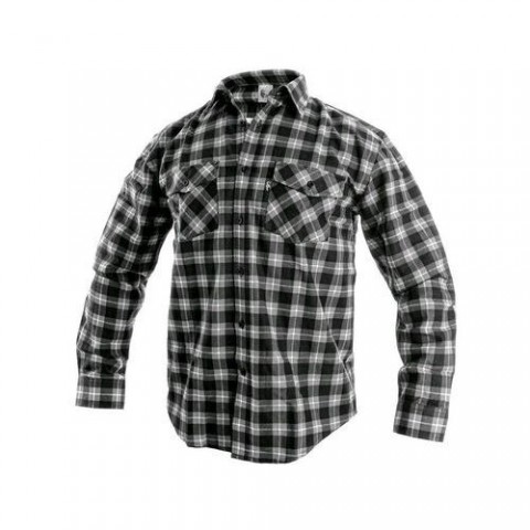 Pánská flanelová košile, manžety a patky kapes na knoflík, 2 náprsní kapsy. Velikost: 40-48 Svrchní materiál: flanel 100 % bavlnaKošile CXS TOM, dlouhý rukáv, pánská, šedo-černá