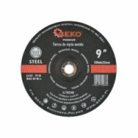 Kvalitní řezný kotouč na kov GEKO PREMIUM s rozměry 230 x 6 x 22,23 mm vhodný pro řezání prvků z konstrukční oceli, plechu, trubek a profilů. Extrémně houževnatá brusná zrna oxidu hlinitého zajišťují vysoký řezný výkon, jsou pojena syntetickou pryskyřicí a vyztužena skelnými vlákny, které prodlužují životnost a odolnost kotouče. Brusný materiál: elektrokorund. Průměr kotouče: 230 mm. Upínací otvor: 22,23 mm. Tloušťka: 6 mm. Max. otáčky: 6600 ot./min. Přípustná lineární rychlost: 80 m/s.Kotouč brusný na kov, 230x6mm GEKO