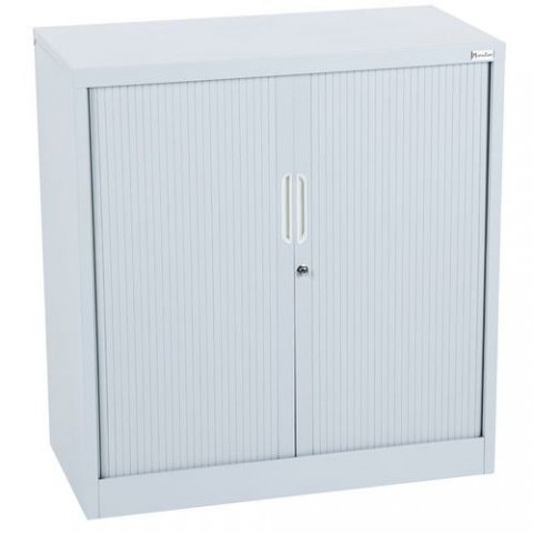 Nízká kancelářská skříň pro ukládání dokumentů a šanonů. Roletové uzavírání vyrobené z PVC s rukojeťmi. Vnitřní police pro ukládání věcí. Možnost uzamčení, dodáváno se dvěma klíči.Kovová spisová skříň s roletou Manutan Expert, 95 x 90 x 45 cm