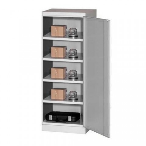 Dílenské skříně na nářadí jsou vybaveny čtyřmi výškově přestavitelnými policemi v rastru 25 mm. Kovové skříně jsou vyrobeny ze svařované konstrukce z ocelového plechu. Jednodvéřová varianta s uzamykáním rozvorovým zámkem. Plechové skříně jsou nabízeny ve třech barevných variantách.Kovové dílenské skříně, 199 x 60 x 43,5 cm