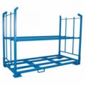 Paletový stojan na pneumatiky ocelové konstrukce se skládacími bočními stěnami. Boční stěny propojeny čtyřmi nosnými trubkami. Úspora prostoru díky možnosti skládání a stohování (max. 4 rozložené palety, celkem max. 3 500 kg). Otvory pro manipulaci pomocí vysokozdvižného vozíku. Povrchová úprava práškovým lakem (RAL 5012).Kovová skládací paleta na pneumatiky, do 800 kg