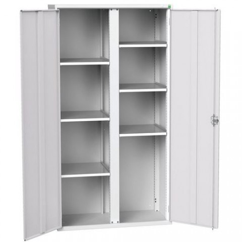 Kovové skříně pro specifické použití v provozech - podle typu vybaveny policemi, zásuvkami, středovou přepážkou nebo i tyčí na ramínka. Pozinkované police s nosnsostí 75 kg, výškově nastavitelné v rastru 25 mm. Zásuvky s nosností 75 kg a 100% výsuvem na válečkových ložiskách. Svařovaná ocelová konstrukce, povrchová úprava práškovým lakem. Vyztužené křídlové dveře s tříbodovým cylindrickým rozvorovým zámkem se dvěma klíči.Kovové skříně pro údržbu Bott Verso, výška 200 cm