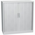 Skříně se dvěma stavitelnými policemi a plastovými roletami, které lze plně zasunout do stran. Možnost uzamčení cylindrickým zámkem.Kovové spisové skříně s roletou, 2 police, 105 x 100 x 45,7 cm